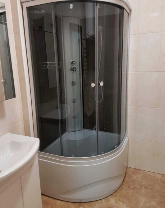 В ванной комнате установлена современная душевая кабина, предусмотрена сушка для белья.