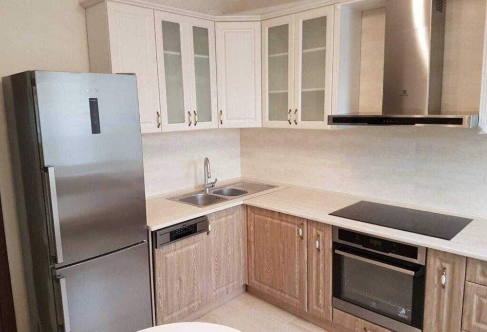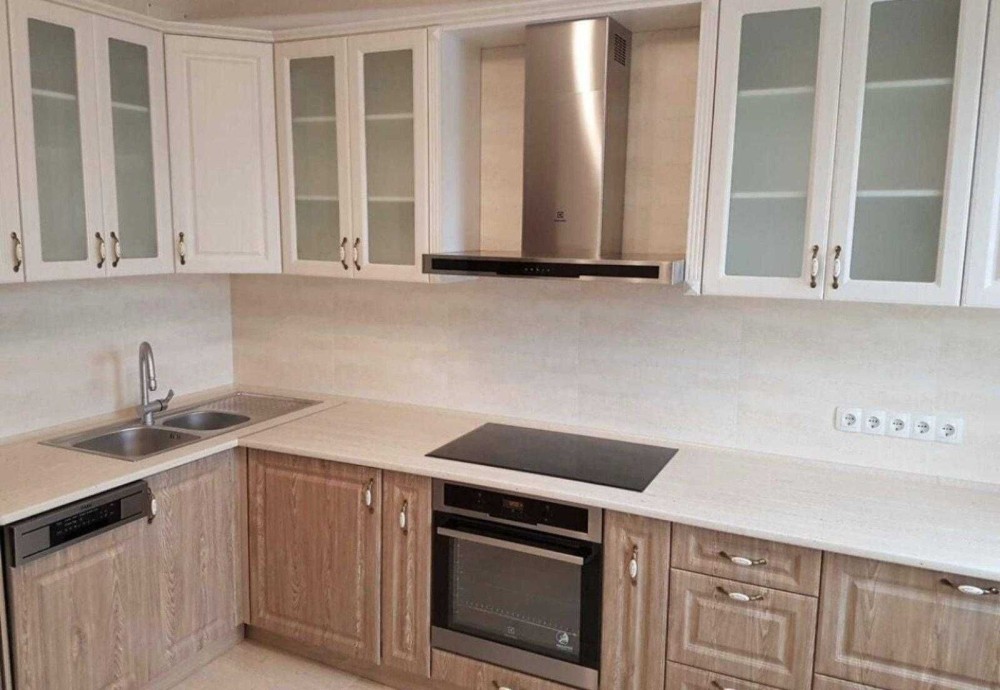 Кухня полностью укомплектована качественной мебелью и бытовой техникой: холодильник, посудомоечная машина, стиральная машина, духовой шкаф, индукционная варочная поверхность, вытяжка, бойлер и полотенцесушитель.