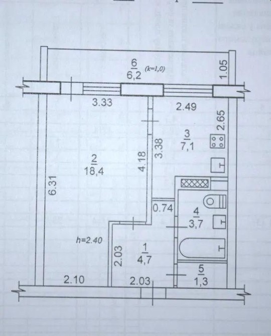 • Площадь кухни 7.1 м2