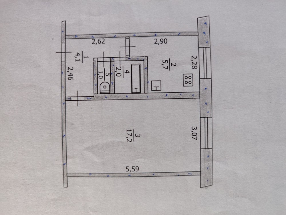 • Площадь кухни 5.7 м2