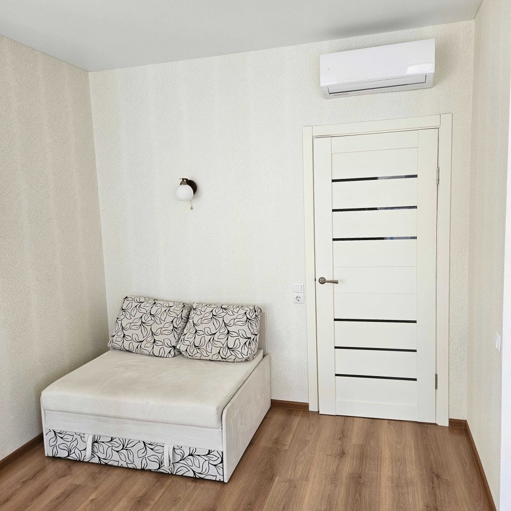 Площадь — 30 м². Просторная кухня-студия, большая ванная комната. Квартира тёплая, хорошая шумоизоляция.