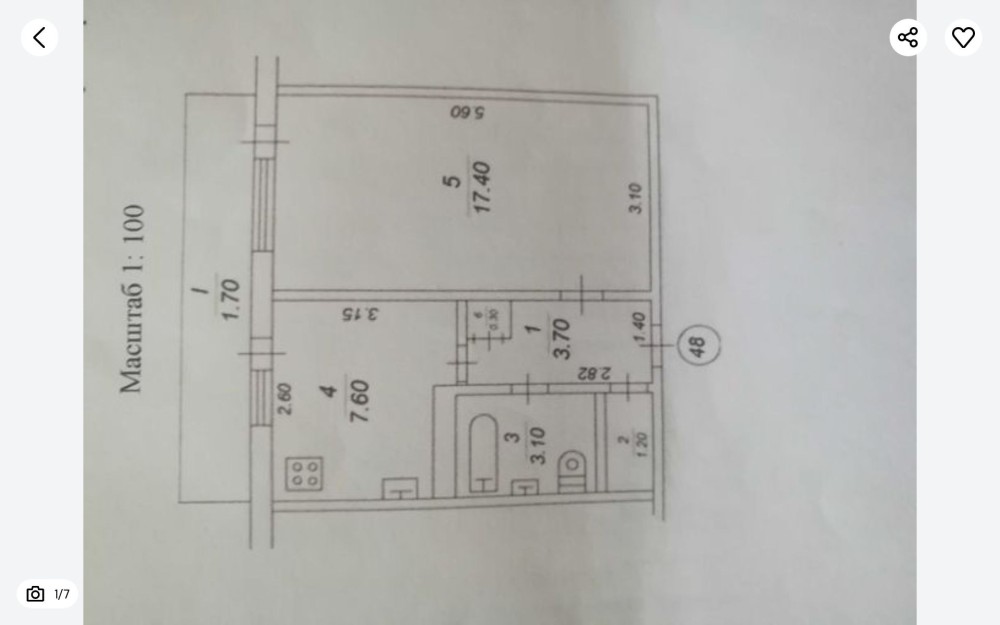 • Площадь кухни 7.6 м2