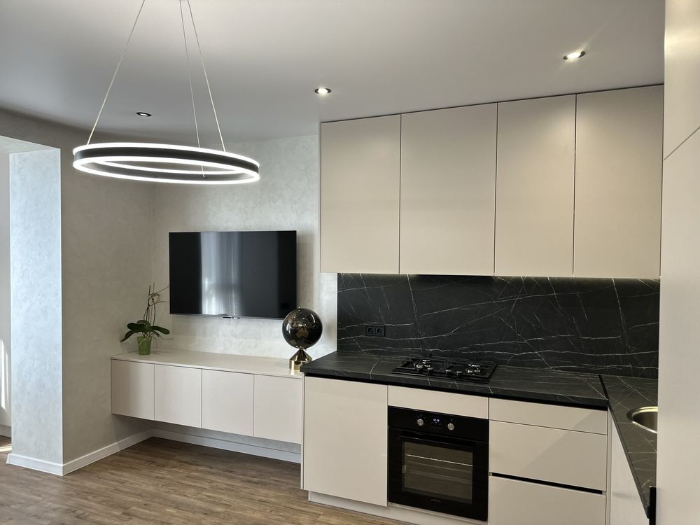 Квартира находится на 5 этаже 10-этажного дома, продуманная планировка: кухня-студия и уютная спальня, гардеробная, санузел. Абсолютно новый ремонт.