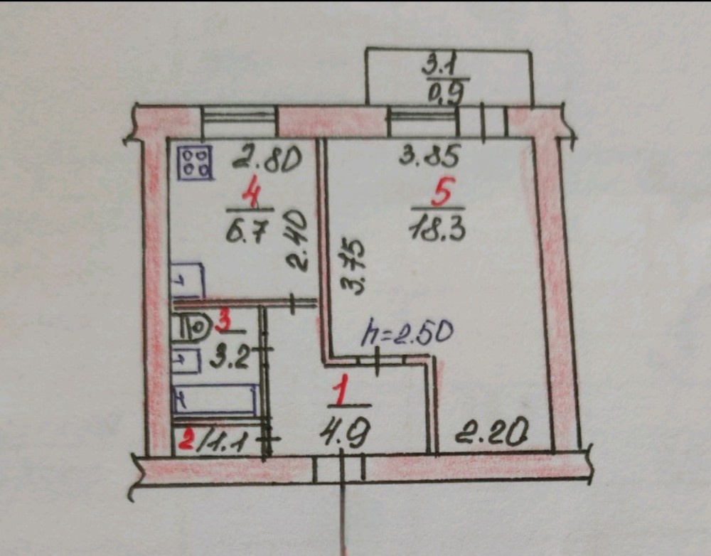 Продам 1 комнатную " Чешку" на 2/9 Космонавтов / 30-я школа - фото 5