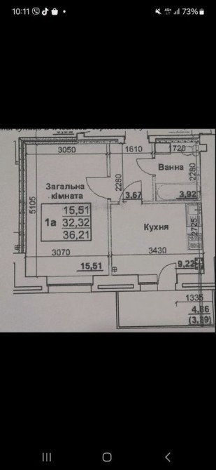Площа квартири: Загальна 37 м2,