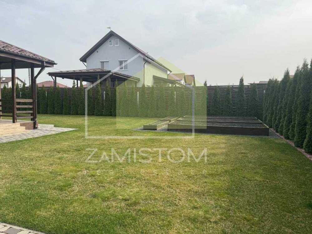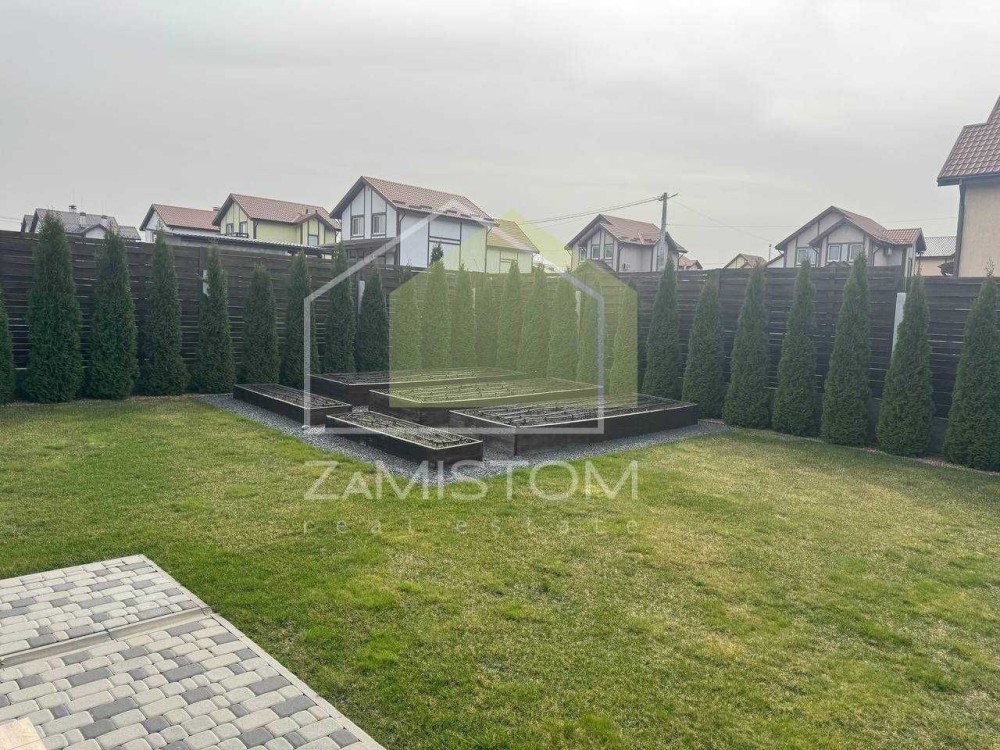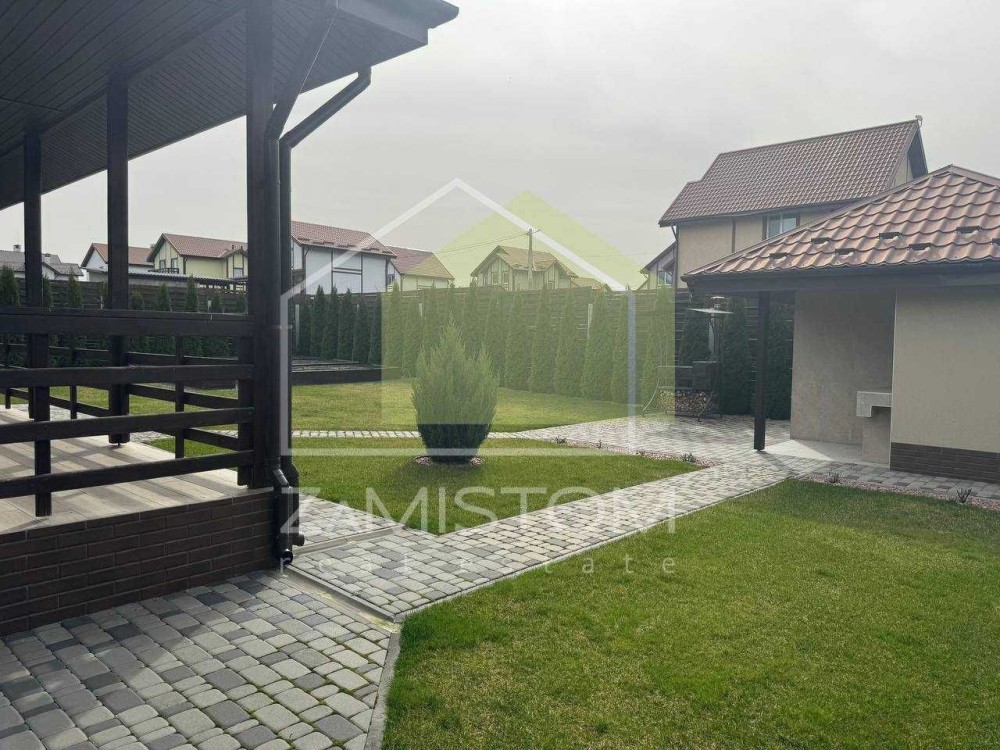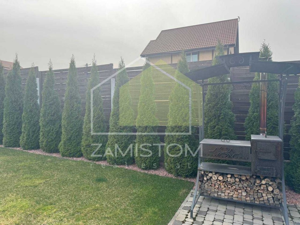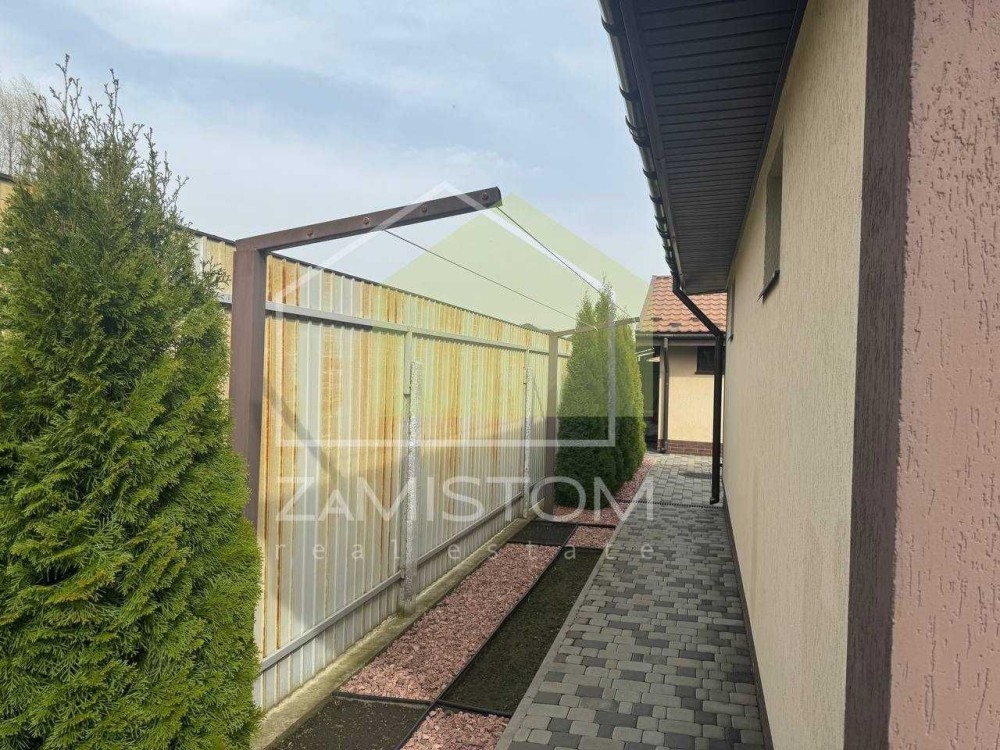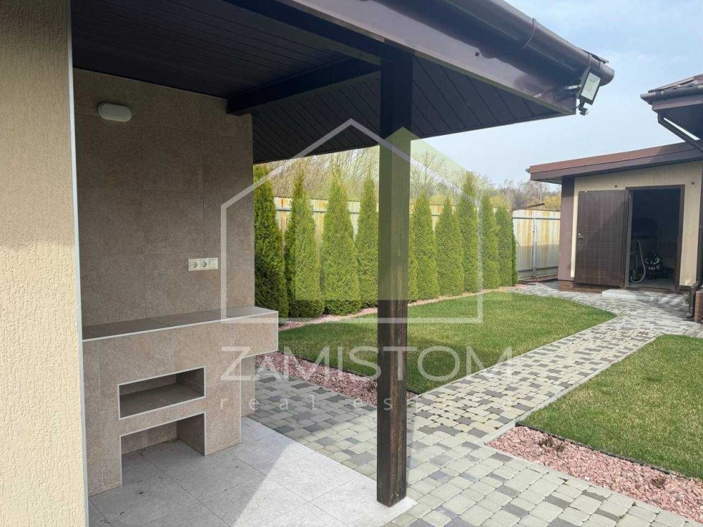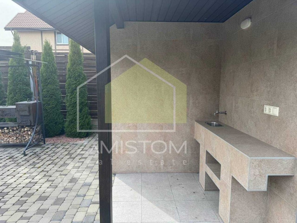 У будинку 3 спальні, велика вітальня – кухня із виходом на простору терасу, санвузл. Компактна та озеленена ділянка 7,5 соток на якій розташовані усі споруди для комфортного проживання, - що включає в себе гараж ( із автоматичними воротами ), побутову кімнату із погребом (бомбосховищем), кімнату для гостей, гриль зону, вуличний санвузол та літній душ, високі грядки із крапельним поливом. Додаткове місце для авто із навісом. Водопостачання від індивідуальної свердловини, каналізація 12 кубів, інтернет, сигналізація, асфальтований під’їзд, територія під цілодобовою охороною. Опалення: тепла підлога та радіатори. В будинку ніхто ще не проживав.