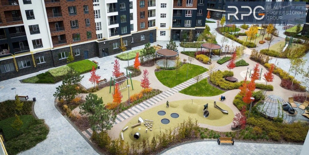Комфортні зони відпочинку, дитячі майданчики в закритій зоні комплексу.