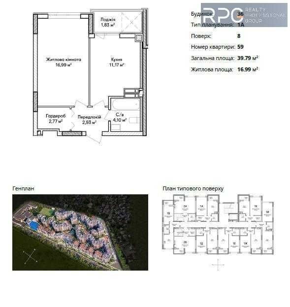 Житлова площа: 16,99 м²