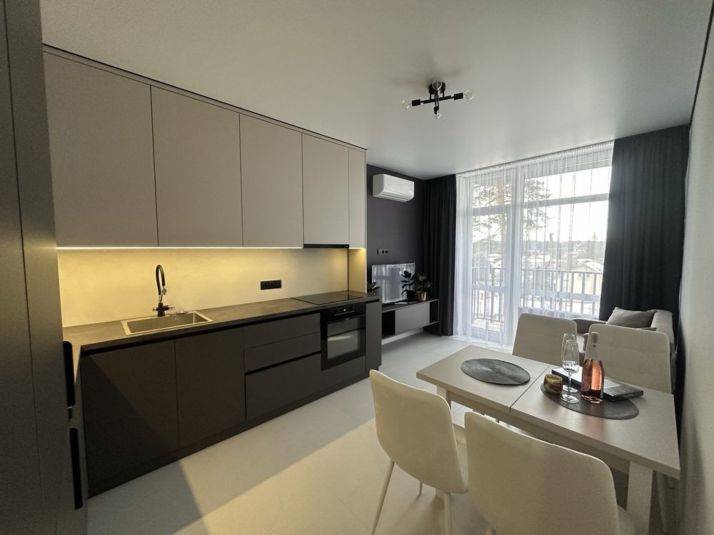 Пропонуємо нову, простору квартиру з ремонтом у престижному житловому комплексі Greenwood 3 від М7, розташованому посеред соснового лісу в Брюховичах — ідеальне поєднання природи та комфорту.
