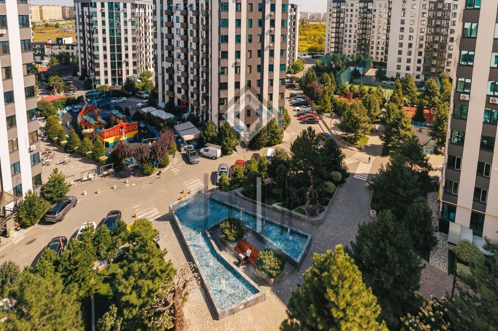 дитячі майданчики з батутами, велику пісочницю з іграшками, фонтани з підсвіткою, зелені зонами відпочинку , спортивними майданчиками (футбол, баскетбол, волейбол, теніс), тенісними столами, тренажерними зонами, відкритий басейн, сцена для концертів й BBQ-зони.