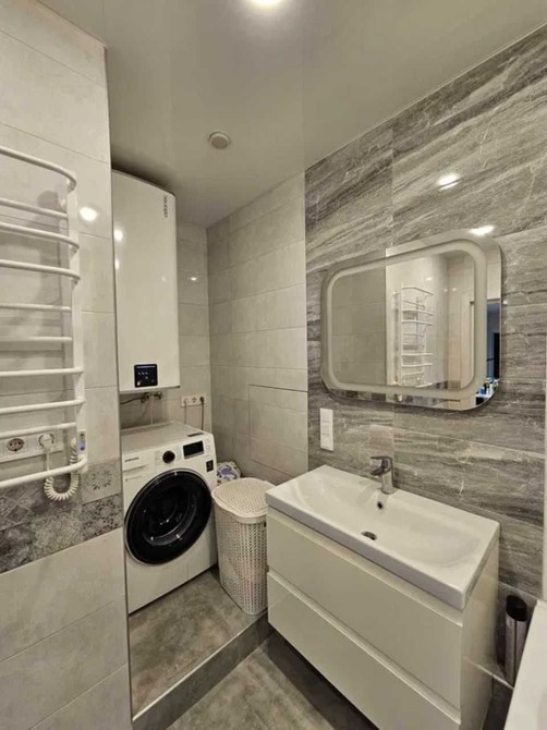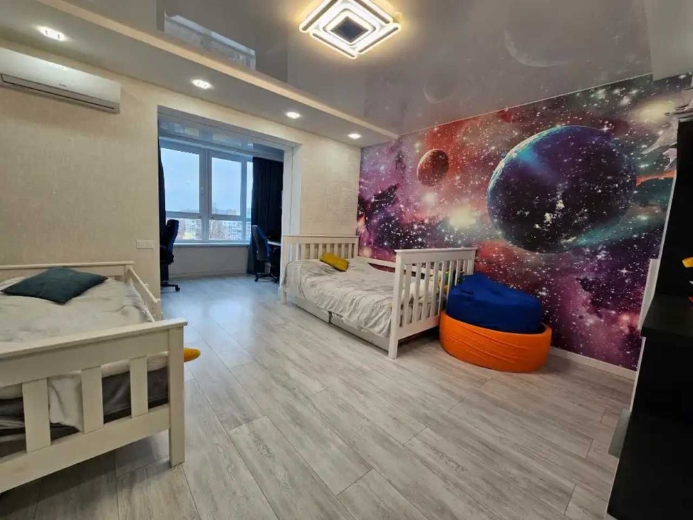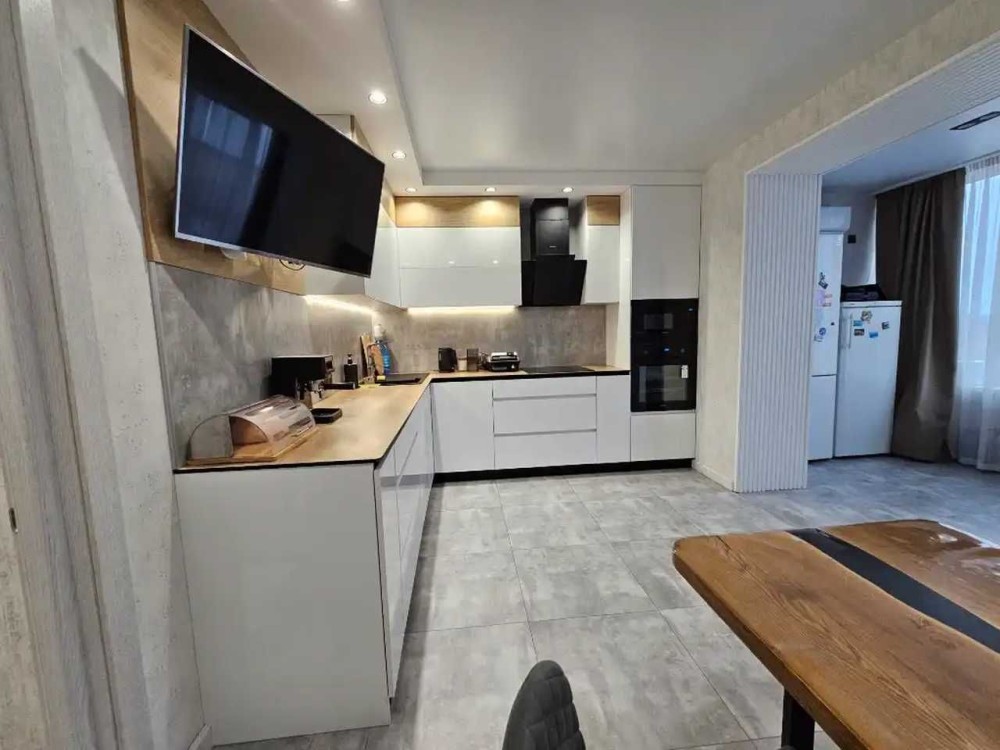Площадь 95м2, спланирована как просторная кухня с зоной отдыха и 2 раздельные спальни, гардеробная, 2 санузла.