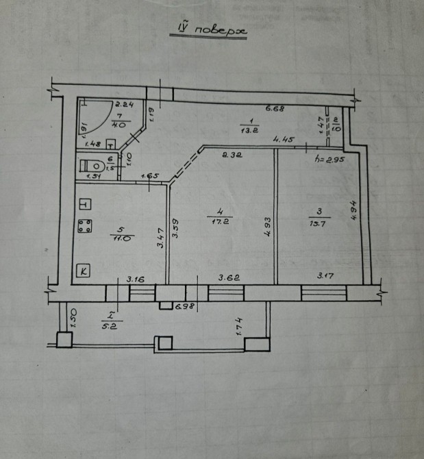 Высота потолка 2,95 м2