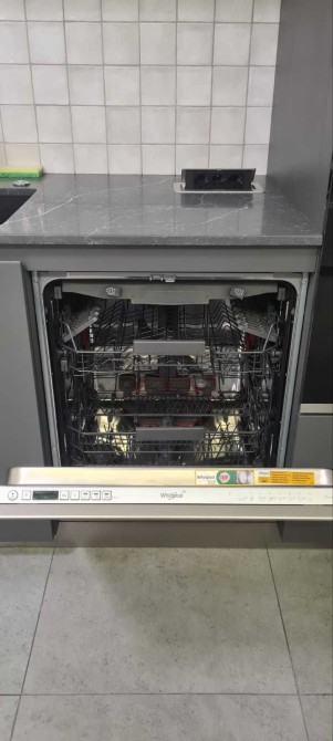 Бытовая техника Whirlpool: холодильник, микроволновка, посудомоечная машина, цилиндрическая вытяжка, фильтры для воды.
