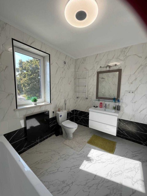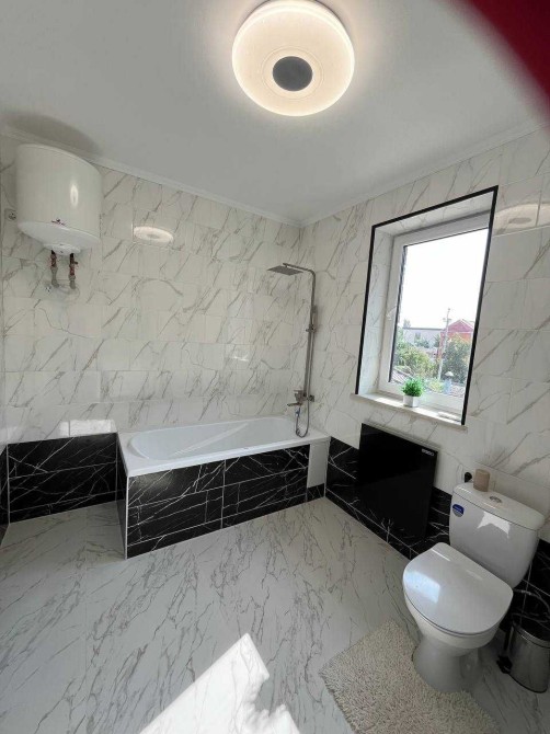 В доме два входа, из коридора есть выход в теплый гараж, есть все коммуникации (газ, свет, вода, интернет), отопление двухконтурным газовым котлом, теплые полы и, в качестве альтернативы, еще есть стационарные электроконвекторы. Микроклимат в доме регулируется кондиционерами, а изысканное освещение комнат создает особый колорит, комфорт и уют.