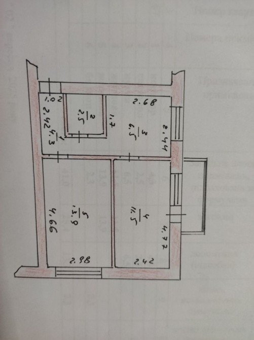 Загальна площа 41 кВ м,житлова 25.4 кВ.м,дві житлові кімнати,кухня 6.5кв.м.,такж є підвал