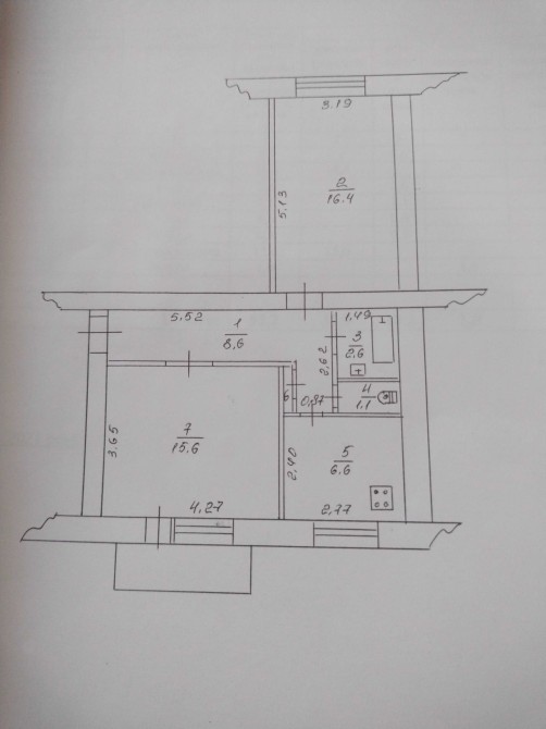 • Площадь кухни 6.6 м2