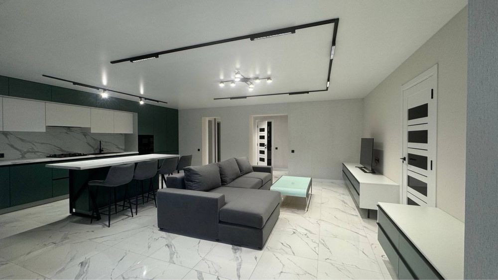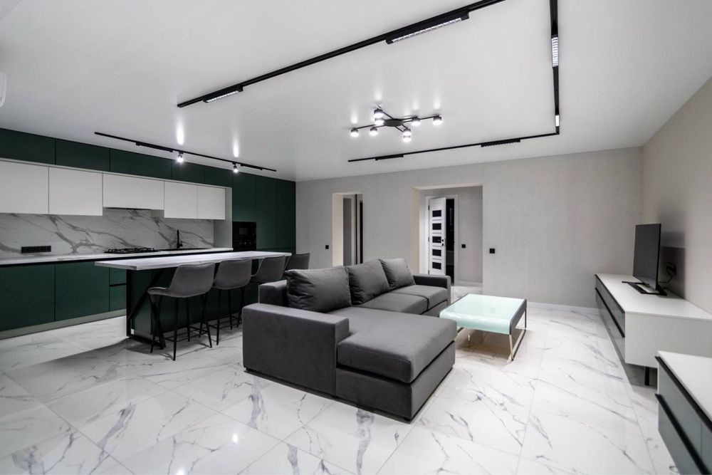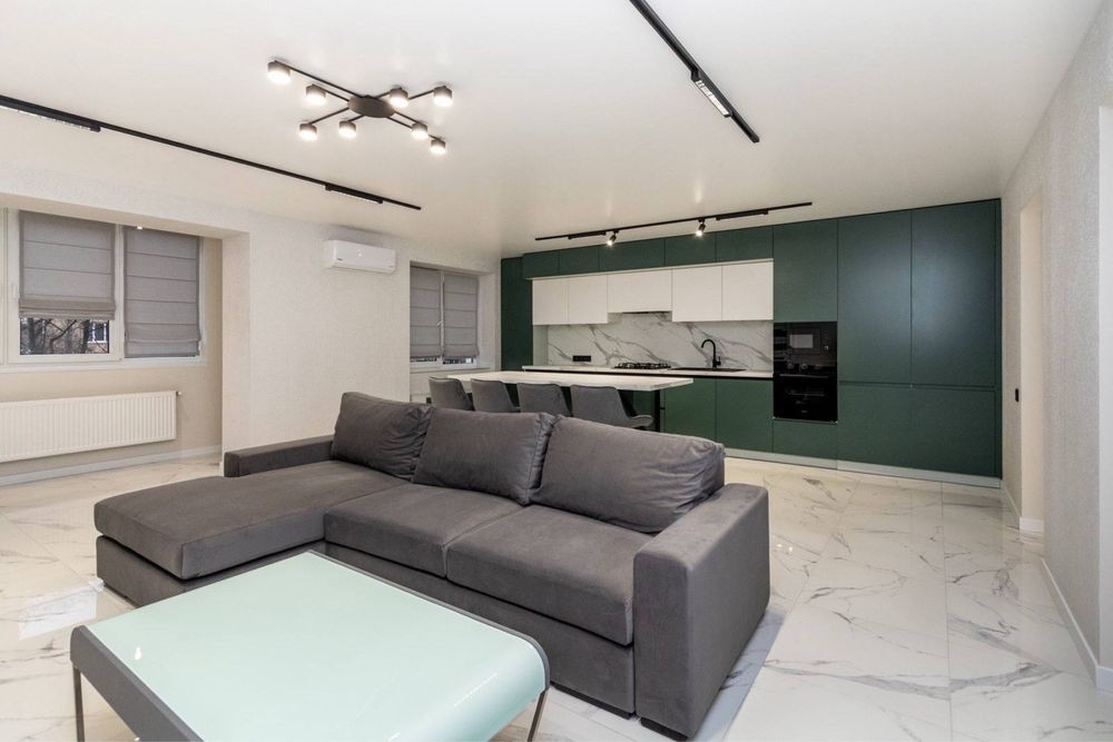 У квартирі виконаний якісний дизайнерський ремонт. Квартира роздільна, є 2 окремі кімнати та простора кухня-студія оснащена якісними меблями технікою.