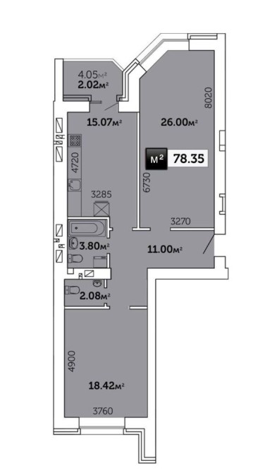 • Общая площадь 78.35 м2