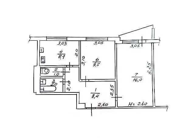 • Площадь кухни 6 м2