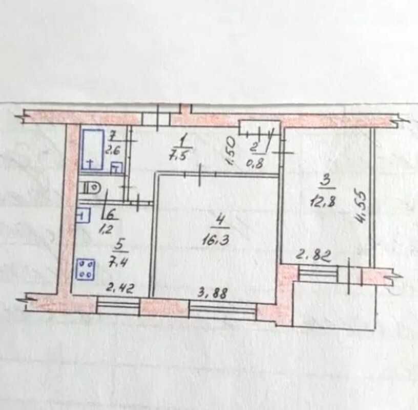 Квартира потребує ремонту. Санвузол суміжний. Система опалення централізована.