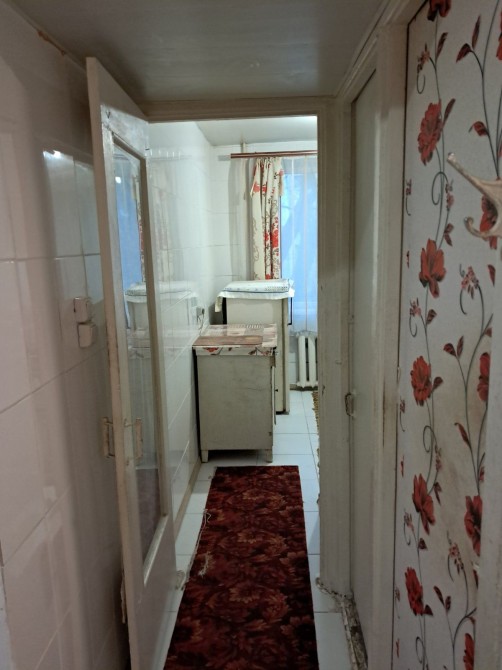 Невелика, але зручна. Плитка світлого кольору, стеля з білого пластику. Є можливість перепланування та встановлення кухонного куточка. Бойлер на 50 л залишається.