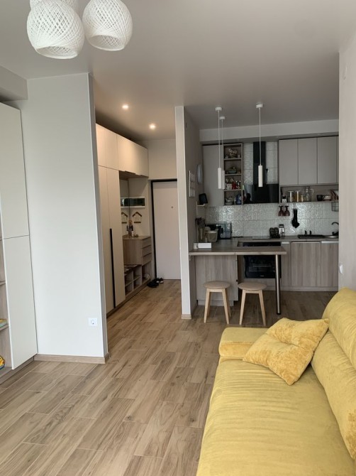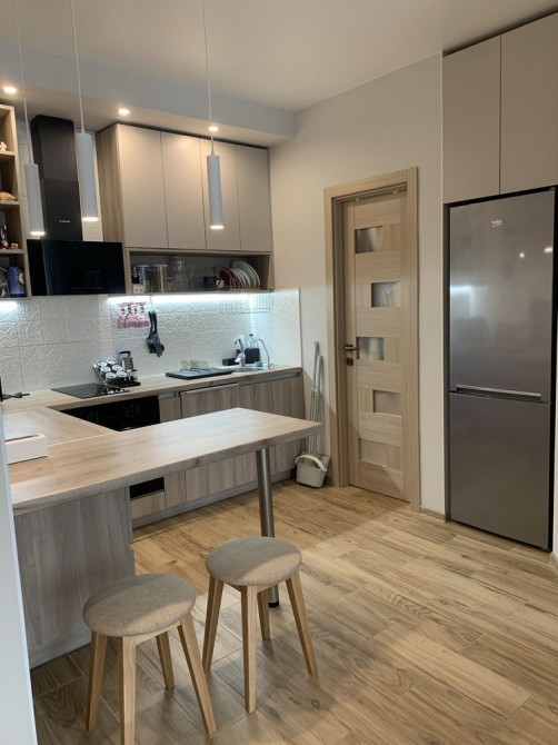 Продається двокімнатна квартира з новим ремонтом, вбудованою технікою та меблями.