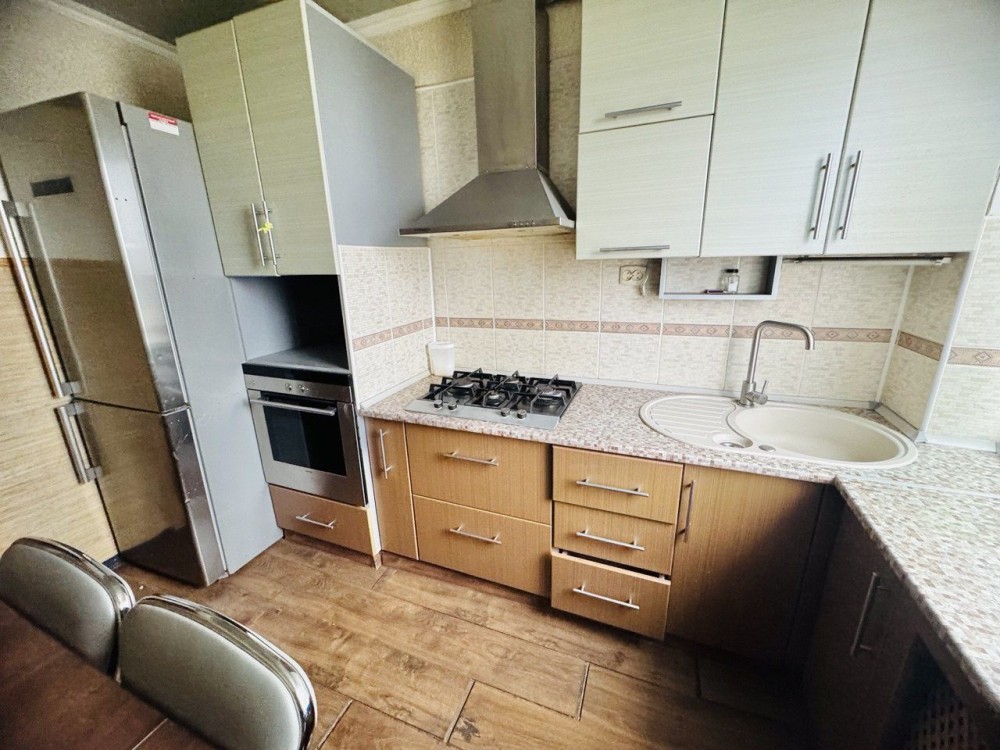 + кухня обладнана вбудованими меблями, плитою, духовкою, витяжкою, холодильником