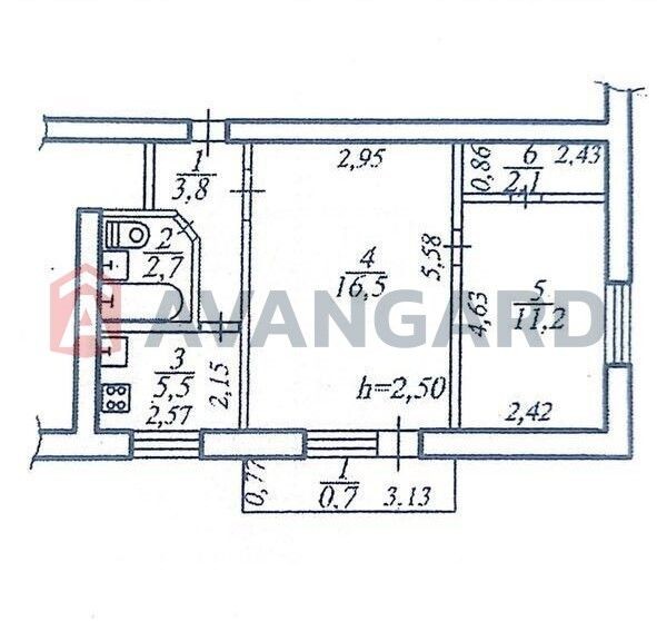Загальна площа 42.5 кв. Стан радянський-житловий під ремонт. М/П вікна, броньовані двері.