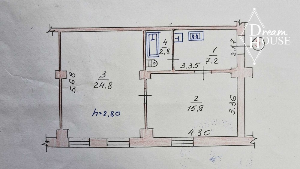 • Площадь кухни 7.2 м2