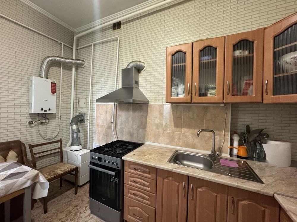 Квартира чистая, в очень хорошем состоянии. Две комнаты, одна из них проходима. На кухне выполнен ремонт в светлых тонах. На полу плитка.