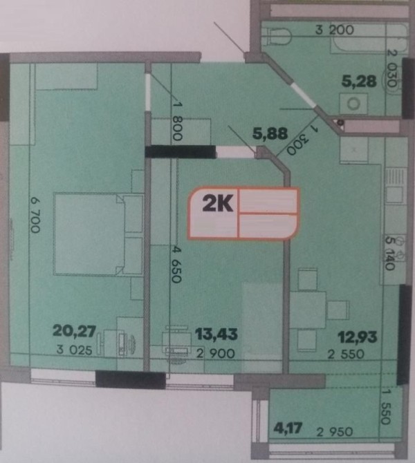 • Площадь кухни 20 м2
