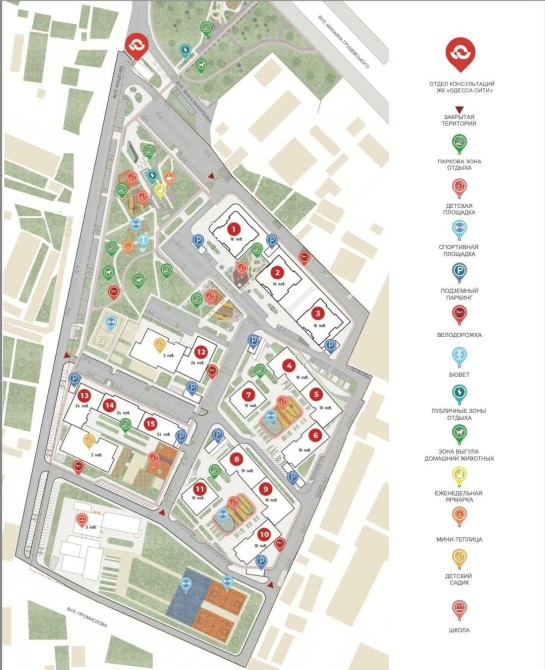 Концепция жилого комплекса "город в городе" со всей необходимой инфраструктурой.
