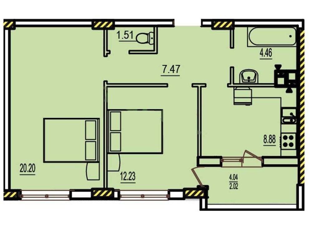 • Общая площадь 57 м2