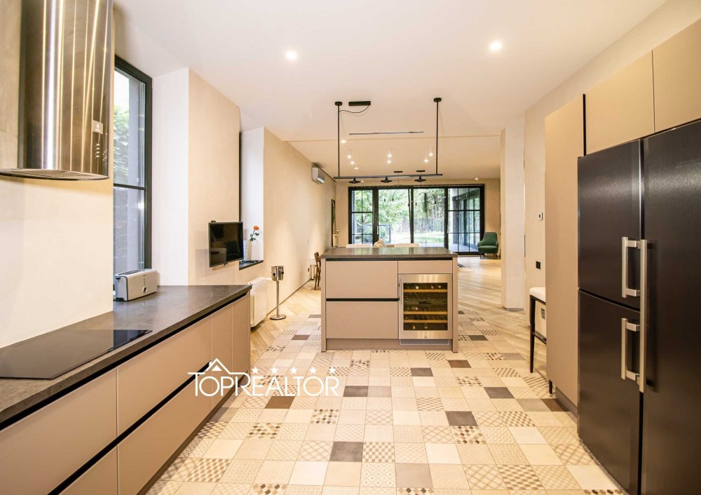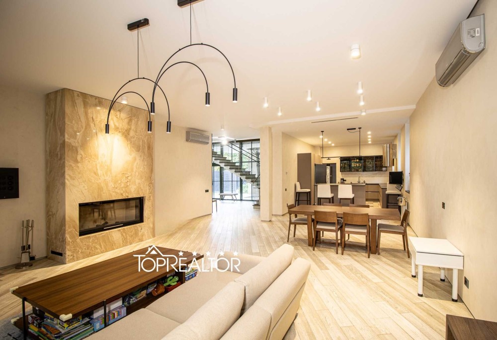 Будинок розташований в самому серці міста поруч з Центральним парком та зоною відпочинку Саржин Яр, в п'яти хвилинах пішки від станції метро Наукова. Будинок двоповерховий, фасад оздоблено білим травертином та клінкерною цеглою з великими панорамними вікнами, дуже світлий та просторий. Планування будинку включає в себе 4 великі спальні кімнати, 3 ванні кімнати, 2 гардероба, кухню-студію, пральню, лазню з басейном з протитечією та вбудований гараж на 2 автомобіля. Прямо з вітальні ви можете потрапити на затишну відкриту терасу з маркізою, що відкривається за допомогою електропривода. Для проведення часу на терасі облаштована зона літньої кухні з відкритим вогнем, а також піч-гриль Хоспер. Для відпочинку та оздоровлення родини до будинку прибудовано спа-зону з окремим виходом на вулицю, що включає в себе великий 10-метровий басейн з лазнею, в басейні зручний вхід для дітей, є протитечія та декоративні підсвітки. Окремо увагу важливо приділити системам інженерії та комунікаціям: 3-фазне електропостачання потужністю 25 кВт; -котельня обладнана комбінованою системою опалення Viessmann з газовим та електричними котлами; -кожна кімната обладнана канальною системою мікроклімату з кондиціонуванням та вентиляцією; -для обслуговування басейну передбачено окреме приміщення в підвалі з насосами та фільтрами для водопідготовки; -міська мережа водопостачання та водовідведення, також для автономності є своя свердловина; -система підготовки та багаторівневої фільтрації води. При будівництві і облаштуванні будинку використовувались лише якісні сучасні матеріали, вся сантехніка, побутова техніка та меблі тільки преміальних виробників. В кожній кімнаті на підлозі натуральна паркетна дошка. Всі санвузли обладнано системою підігріву підлоги. Панорамні вікна облаштовано системою автоматичного відкривання штор. До будинку зручний асфальтований під’їзд. На ділянці 11 соток окрім житлового будинку розташований будиночок охорони, гараж на 2 автомобіля з прямим входом до будинку та великий дитячий гральний комплекс з батутом та скеледромом. Ділянка потопає в зелені, тут виконано професійний ландшафтний дизайн, висаджено безліч декоративних дерев та квітів, встановлено система автоматичного поливу. Окрему увагу приділено охороні території: окрім приватної охорони також по периметру встановлено датчики автоматичного сканування ділянки. Будинок було побудовано в 2018 році с червоної керамічної цегли в два поверха з підвальним приміщенням. Загальна площа будинку 445м2. Усі комунікації центральні.