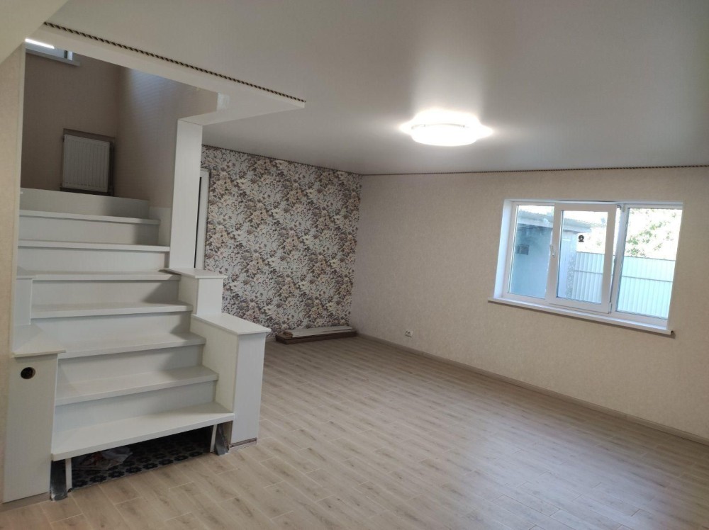 1 поверх: прихожа, ванна кімната, кухня-студіо, ніша для речей та котельня з власним погребом. Повністю покладена плитка у ванній кімнаті, тепла підлога, кухня студія 37.7 кв, прихожа 8.7кв.м, поклеєні обої, натяжна стеля.