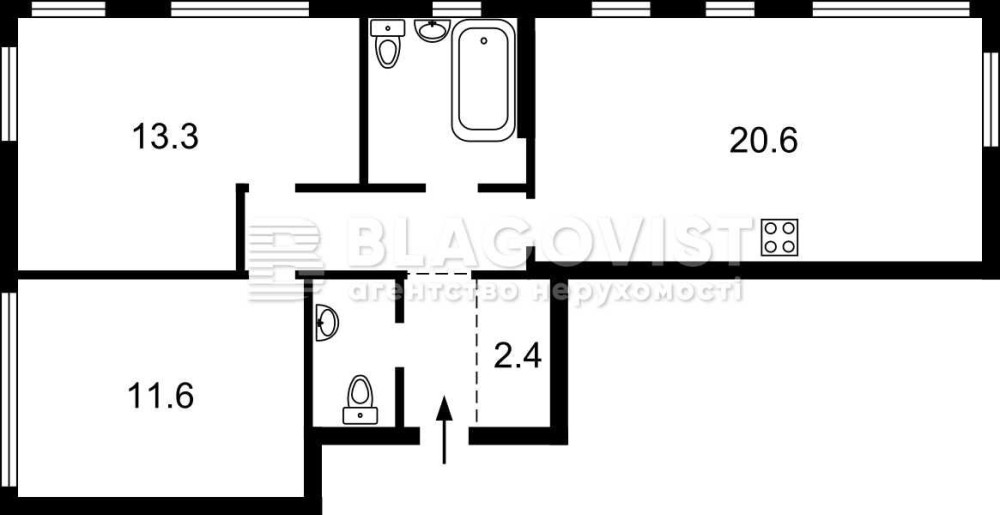 • Трехкомнатная