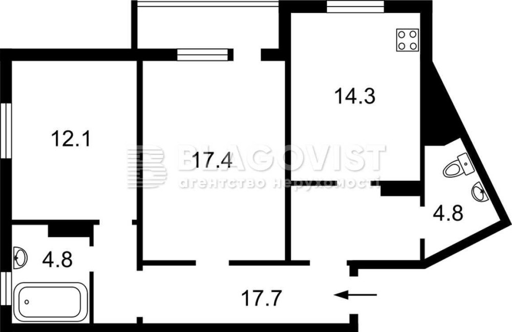 • Площадь кухни 14.3 м2