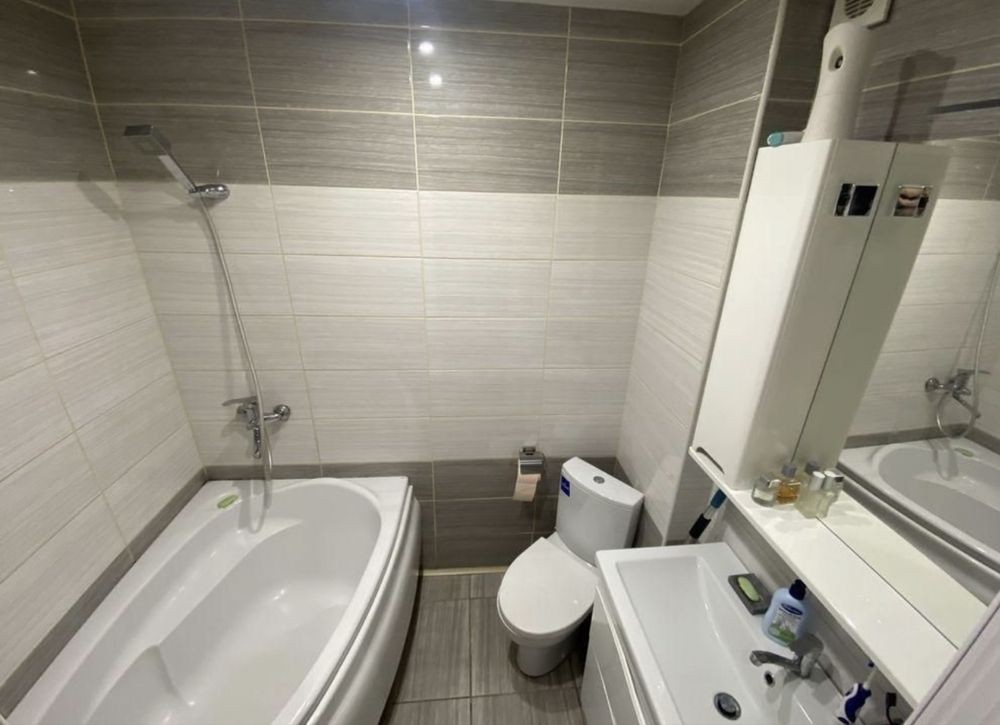 Санузел смежный, в плитке, с новой сантехникой.