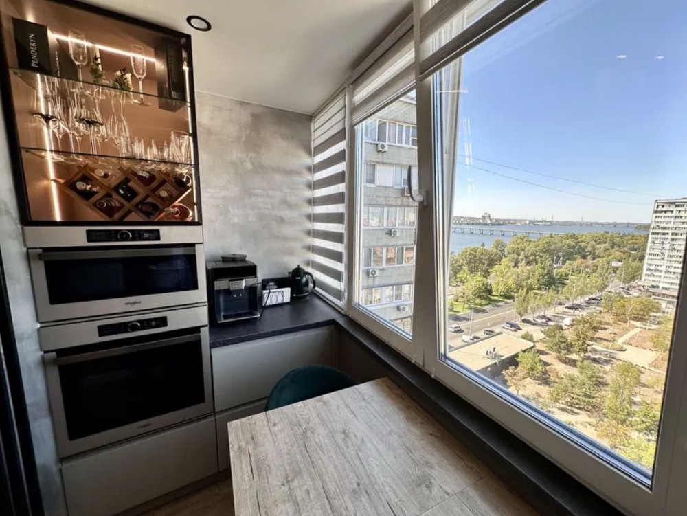 З кожного вікна відкривається чудовий краєвид на річку Дніпро та Новий міст, де ви зможете зустрічати неймовірні заходи сонця.