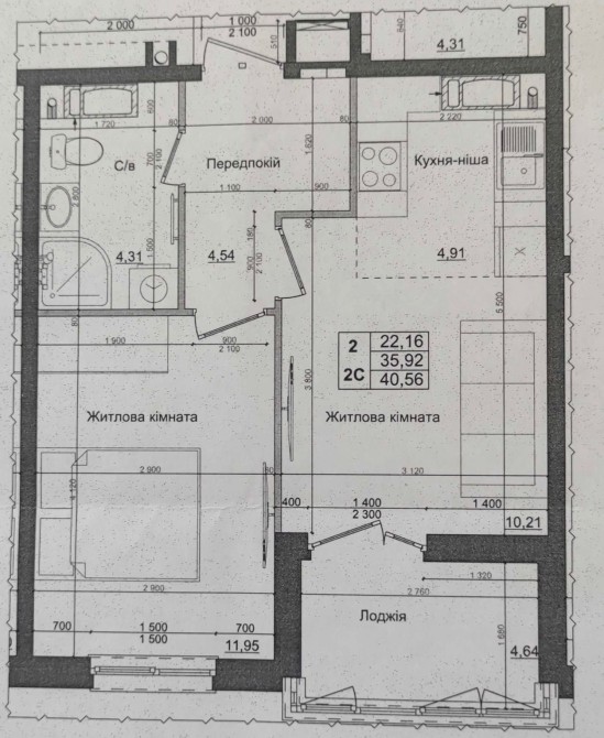 • Общая площадь 40.56 м2