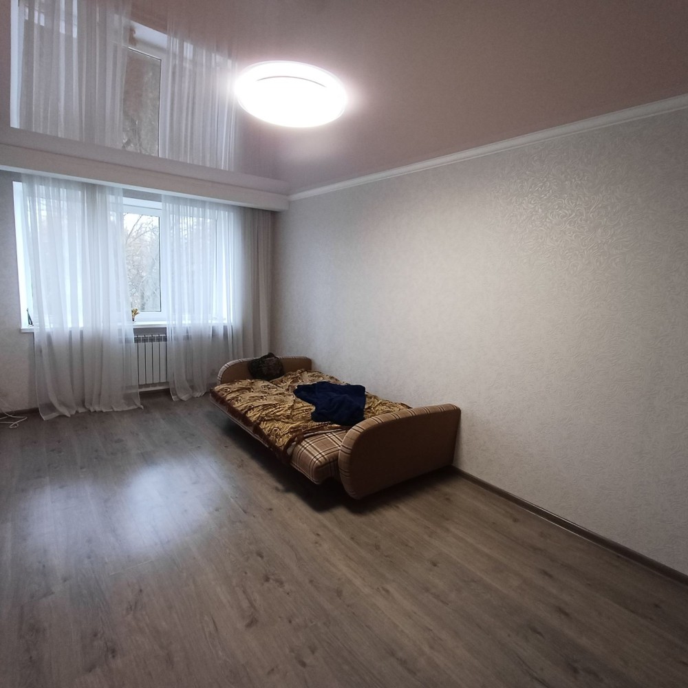 Метало-Пластиковые Окна, натяжные потолки, на полу ламинат.