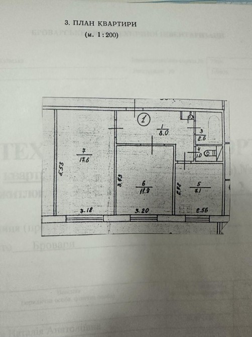 кухня 7 кв.м, 2 окремі кімнати, без балкона, 1 роздільний санвузол, передпокій.