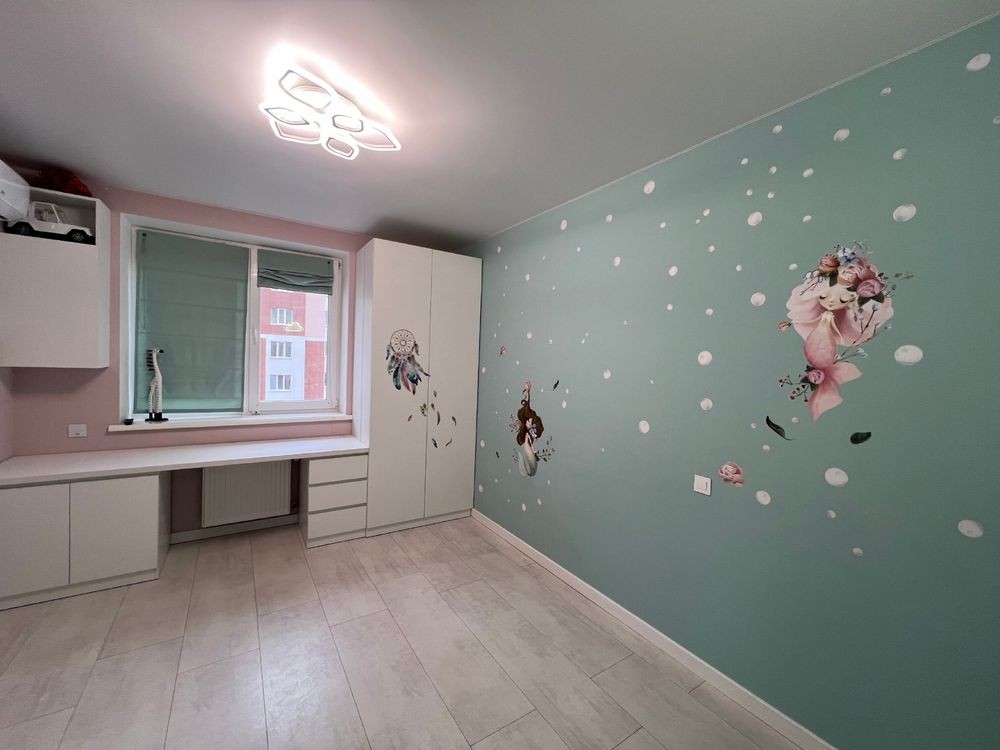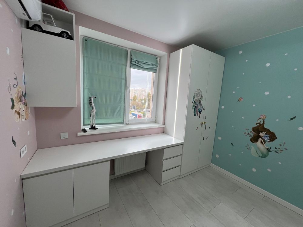 • Дитяча кімната – вбудовані меблі, смарт-ТВ Samsung 43”, кондиціонер, ролети, blackout римські штори.