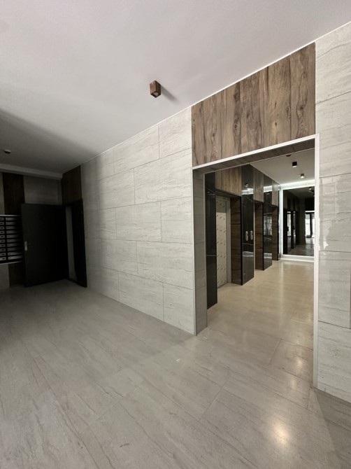 Просторий, стильний хол у будинку з місцем для консьєржа, охорони, цілодобове відеоспостереження. Також на будинок встановлено 3 ліфти: 2 пасажирські та 1 вантажний ліфт.