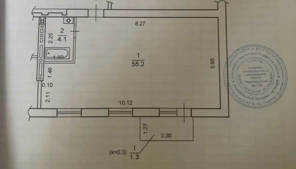 Можливе планування ( кухня-вітальня, дві окремі кімнати) .