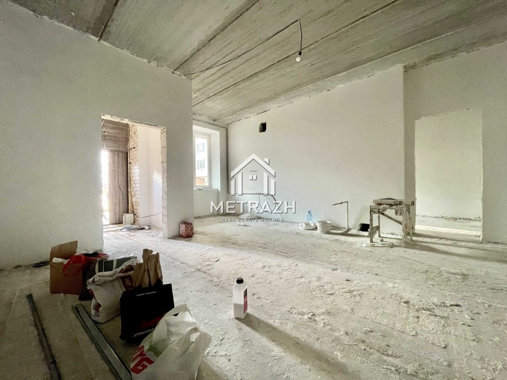 Формат квартири: кухня студія, спальня. Загальна площа 64,3 м2. Є проект на пристройку (погоджено). Окремий вхід. Вікна виходять у двір будинку. Будинок із Червоної цегли, стіни утеплені.Перевага цієї квартири - окремий вхід та дуже товсті цегляні стіни. Індивідуальне автономне опалення (двоконтурний газовий котел), МПО, газовий лічильник. Система відеоспостереження на всій території комплексу, цілодобова охорона, парковка. Поруч вся необхідна інфраструктура: зупинки громадського транспорту, магазини, ринок, школи, дитячі садки, ТРК тощо. + Є у продажу гаражний бокс на теріторії, ціна 13000$