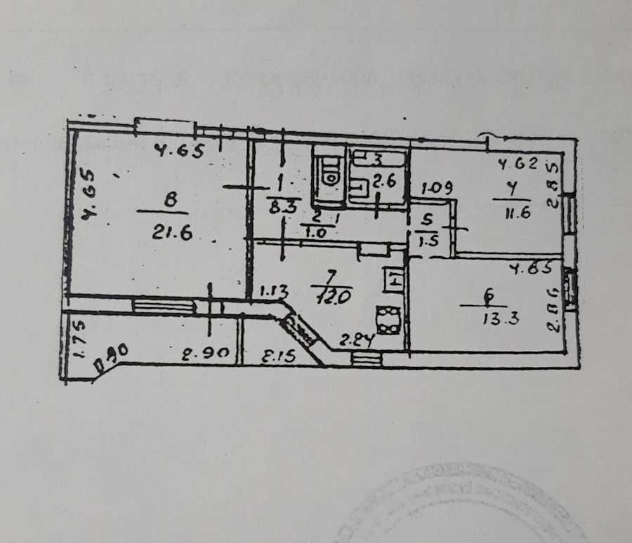 Просторная квартира с нестандартной планировкой: площадь 75 м2, раздельные комнаты, 12-метровая кухня, большая лоджия. Высота потолков 2,75м.