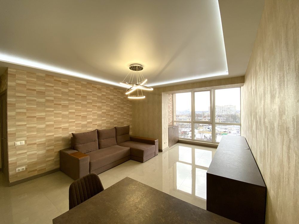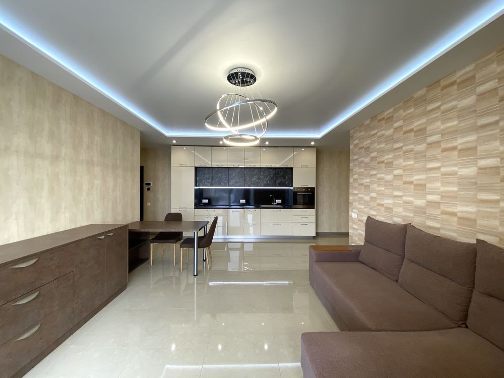 ЖК Созидатель! Продам 3-кімнатну квартиру-студію з меблями та технікою в новобудові в Цетрі на вул. М. Грушевського. Будинок цегляний із зовнішнім утепленням (мінеральна вата 100мм + короїд). Площа квартири 78м2 з кухнею-студією 38м2, дві окремі спальні.