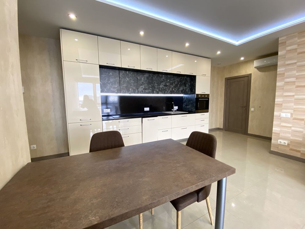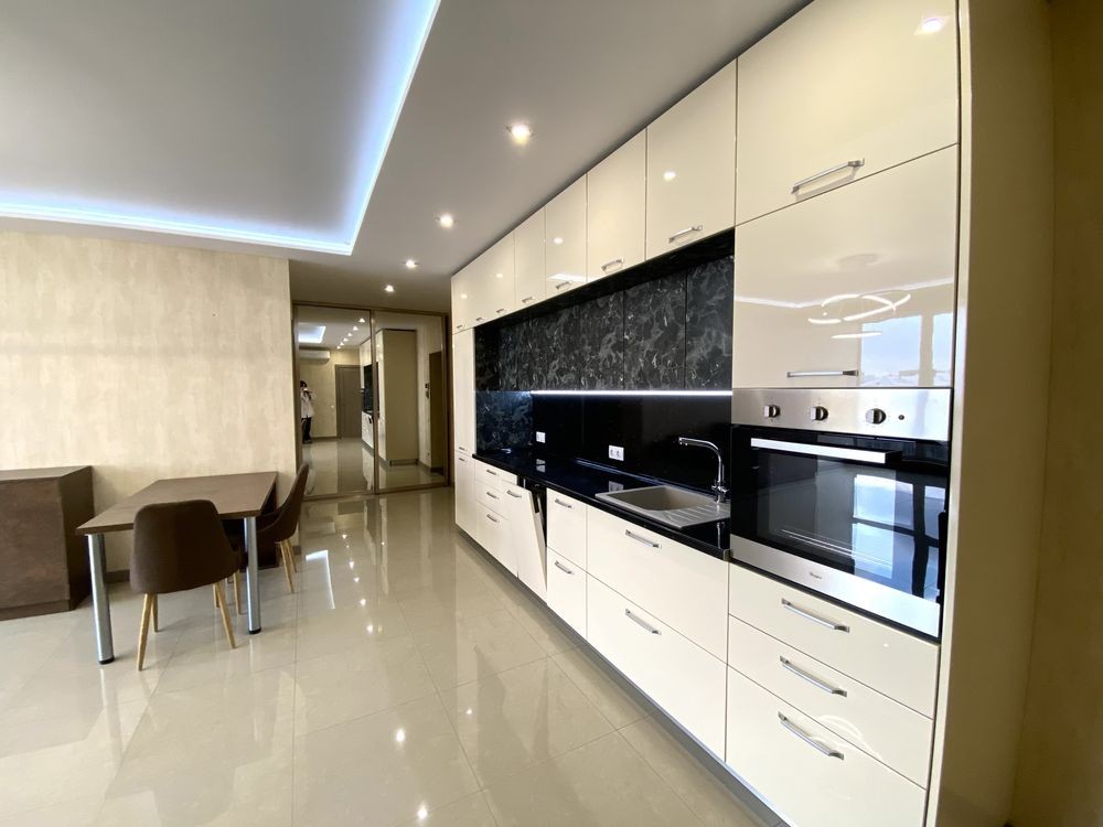 В квартирі зроблений капітальний ремонт та знешумлення стін. Вбудована кухня обладнана электричною варильною поверхнею, посудомийною машиною, холодильником, духовою шафою. В спальні та у передпокої є великі вбудовані шафи-купе.