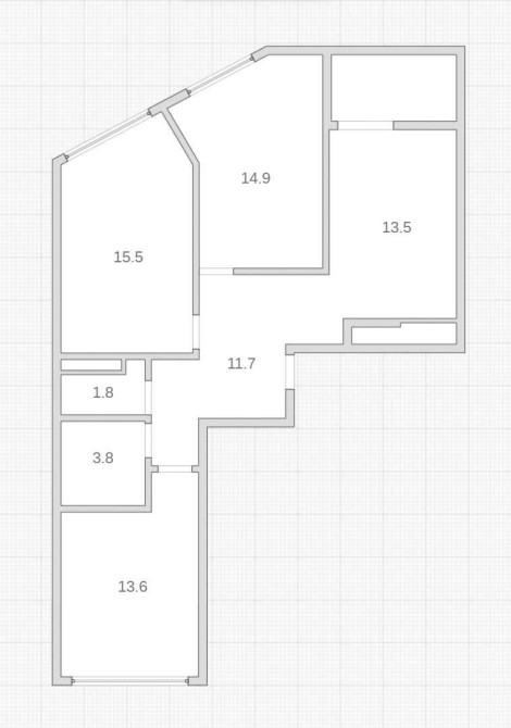 • Площадь кухни 15.5 м2